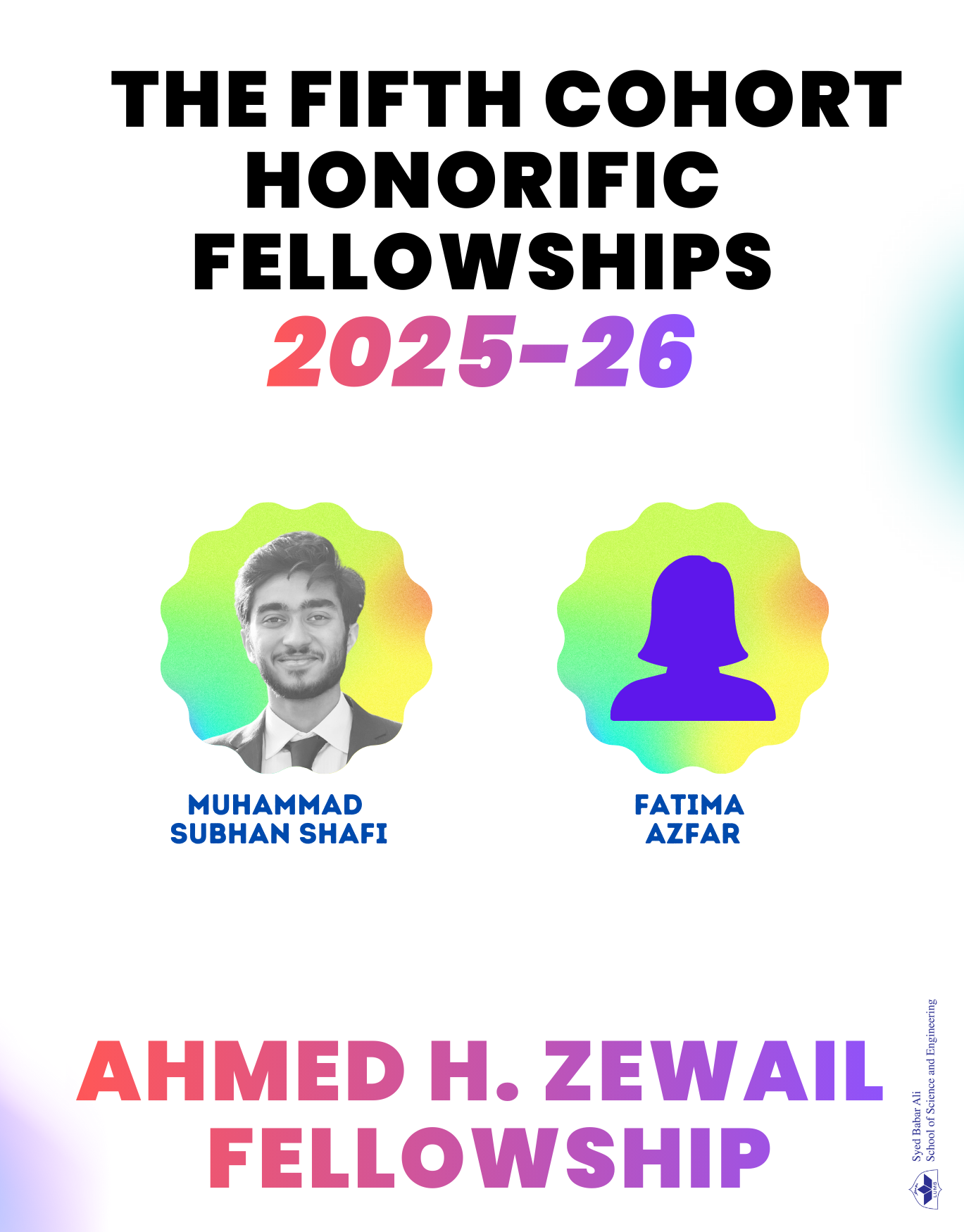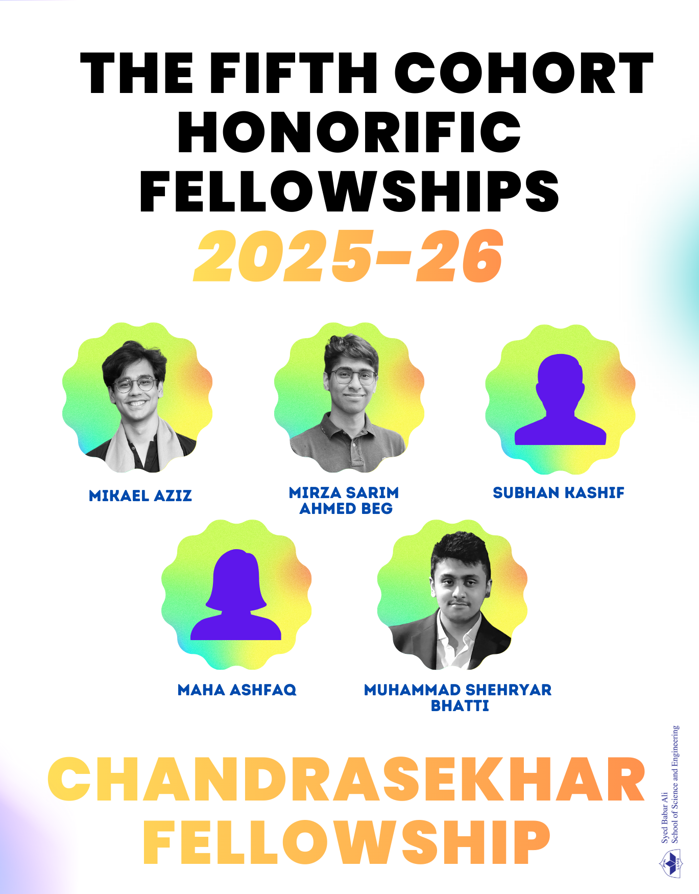 We are excited to announce the selection of 16 outstanding students for the fifth cohort of Honorific Fellowships in the basic sciences. These prestigious fellowships are made possible thanks to the generous support of Syed Babar Ali and Packages Limited.