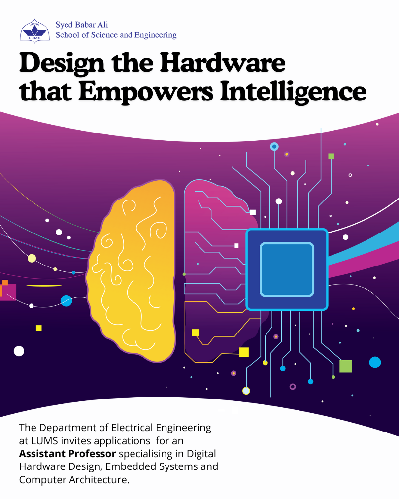 We are seeking an ambitious researcher with a passion for innovation to join our vibrant Electrical Engineering Department. The successful candidate will contribute to a dynamic curriculum, lead cutting-edge research, and help shape the future of Electrical Engineering education at LUMS, with a particular focus on computer hardware architectures and systems for accelerating AI.